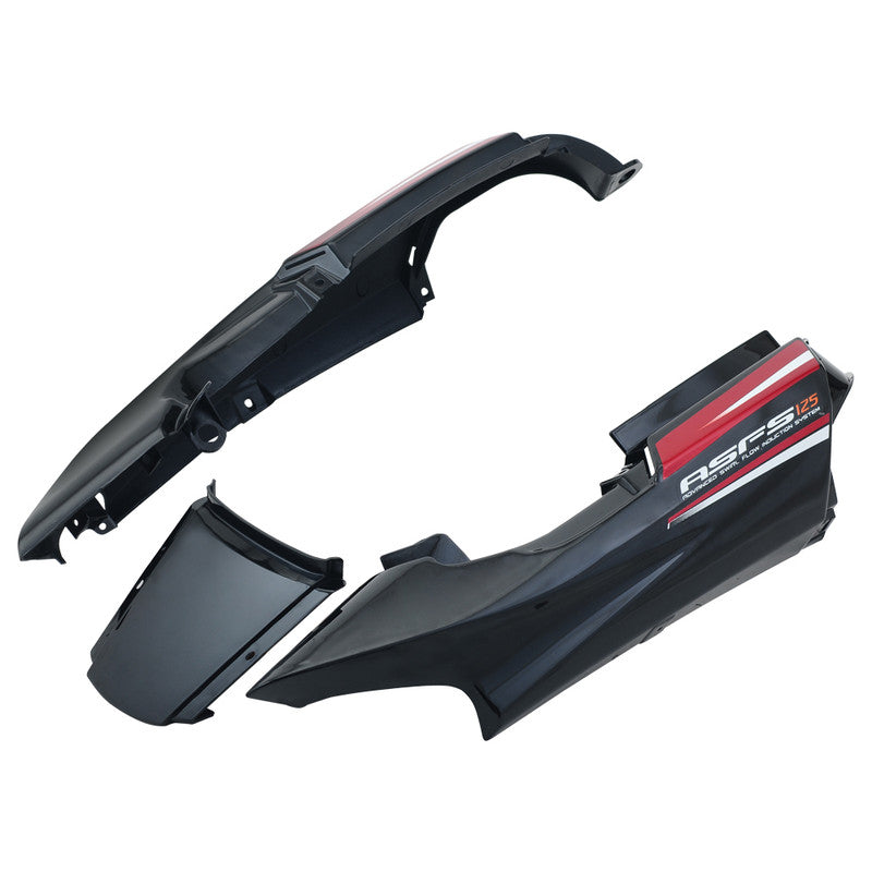 Tail Panel / Rear Cowl Set Fit For Hero Super Splendor Latest (Type-2) Black (Red Sticker)